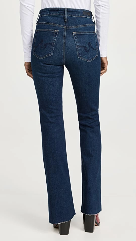 A fresh rendition of AG’s classic Farrah high-rise jeans, featuring an inky wash with heavy fading, plus fraying at the boot-cut hem. Add leather boots and a monochrome pullover to complete your outfit.