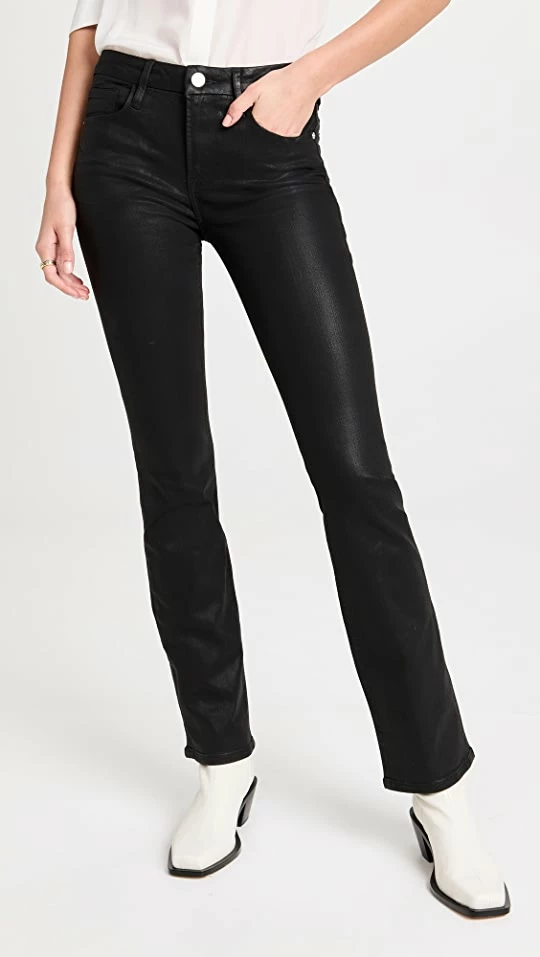 An easier way to achieve a leather-like look, these FRAME black jeans feature a subtle flare and a waxy, lustrous coating. Team them up with a favorite pair of booties and the top of your choice to complete your outfit.