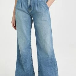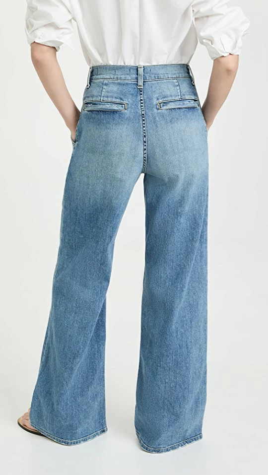 With tidy pleats and trouser-style pockets, these Nili Lotan jeans offer a more polished take on wide-leg style. Heavy fading gives this pair a broken-in appearance.