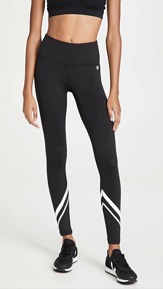 A performance-ready pair of mid-rise Tory Sport leggings, accented with eye-catching chevron stripes above the cuffs.